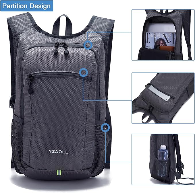 YZAOLL Small Hiking Backpack 15L Lightweight Packable Outdoor Hiking Daypacks for Women Men Travel Camping,DarkGray