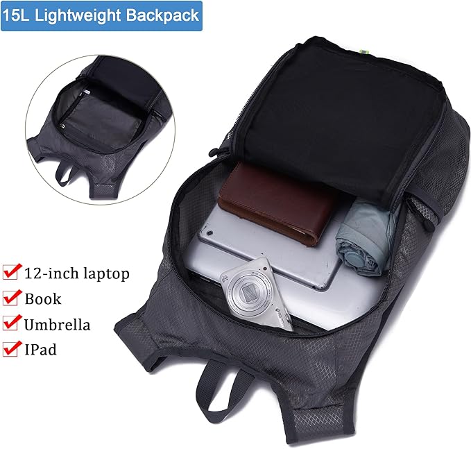 • ★【15L CAPACITY & CONVENIENT DESIGN】: The main pocket is large enough to accomodate a lot of stuff, such as large gadgets, several books, 12-inch laptop, etc. 2pcs mesh pockets on the side can place your water bottle or umbrella. Another large compartment is on the outside Surface so that you can get some items quickly. There are also smaller compartments inside where you can store your wallet and other Valuables or small items.