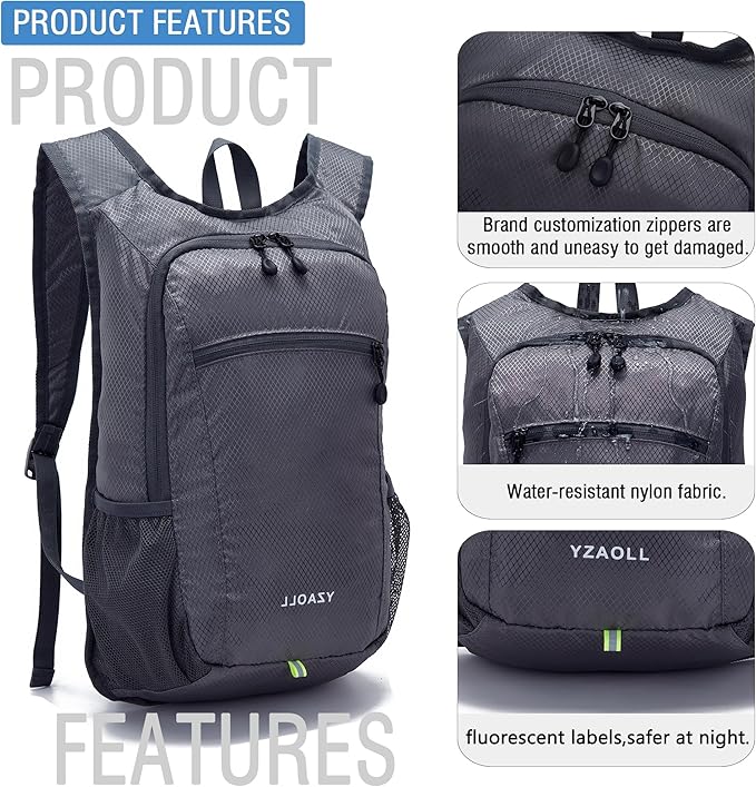 • ★【PREMIUM & DURABLE & SUPER VALUE】: Lightweight hiking backpack is made of high-quality and water-resistant nylon waterproof fabric. Brand customization zippers are smooth and uneasy to get damaged. Nylon shoulder straps are waterproof and adjustable.