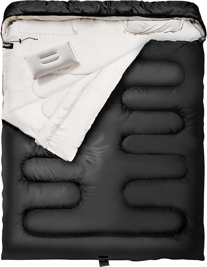 Double Sleeping Bag with Pillow for Adults - Queen Size Two Person Sleeping Bag - 3 Season Cold Weather Camping Sleeping Bag