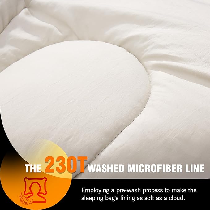 • 【Cotton-like lining】The 230T water-washed ultra-fine fiber fabric is more suitable for campers who prefer a cotton-like feel. It has the texture of cotton but is not as susceptible to dampness, which allows the Harmony Series sleeping bags to still provide some insulation in humid environments.
