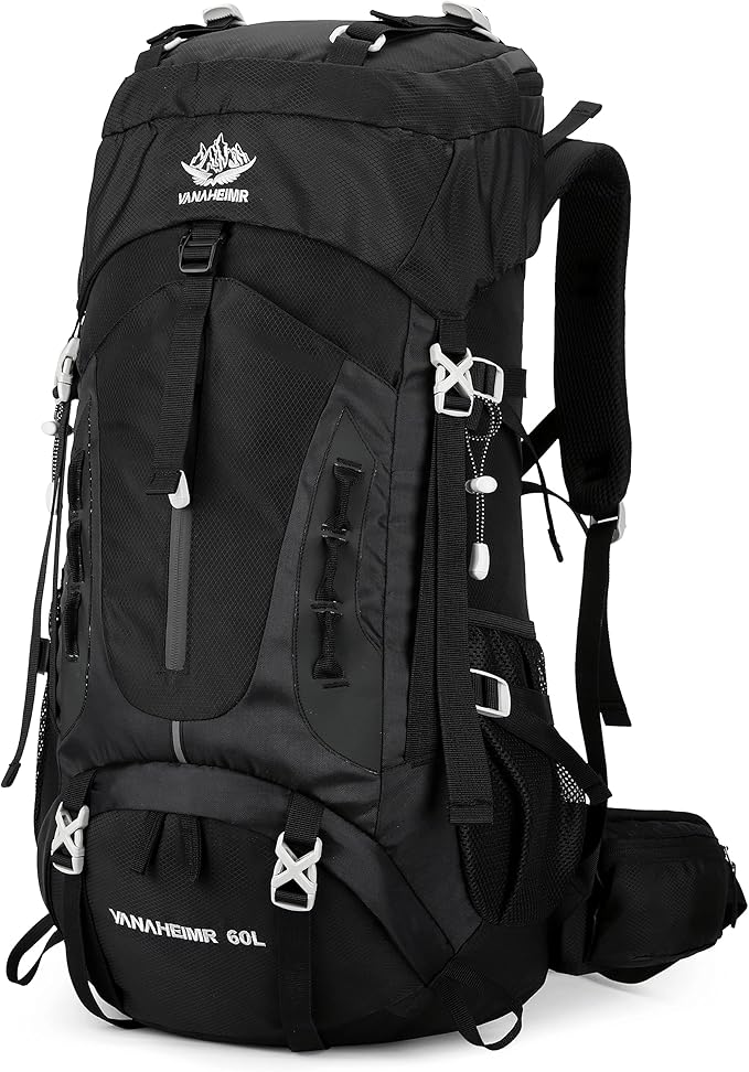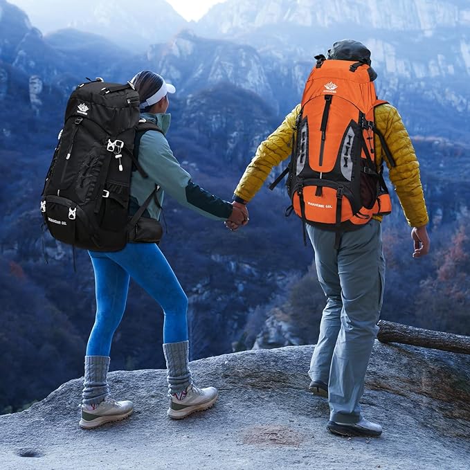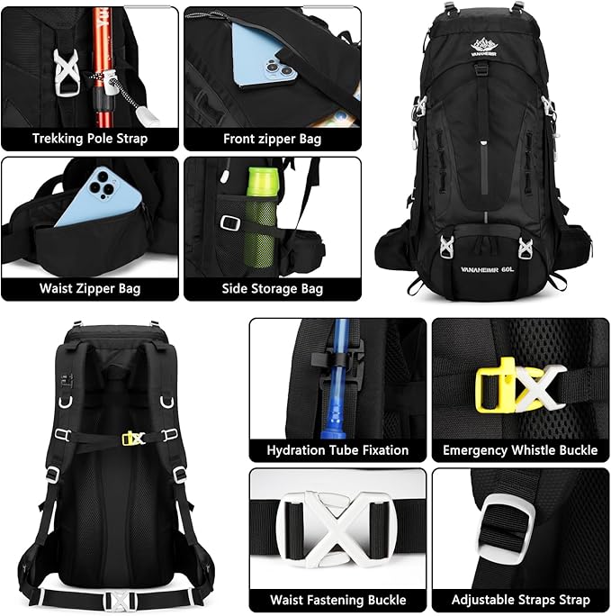 60L Hiking Backpack Men Camping Backpack with rain cover Lightweight Backpacking Backpack Travel Backpack (Black)