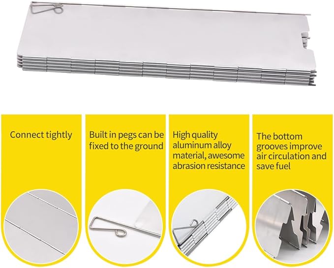 • 【Scientific Design】- The bottom vent of the stove windshield allows airflow circulation, built in pegs secures wind shield into ground and ensures the stove windshield won't be blew down by the wind.