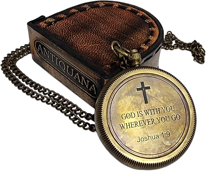 Brass Compass Unique Print 'GOD is with Yout' Engraved Compass with Leather Case and Chain A Great Gift Item for Your Loved Ones