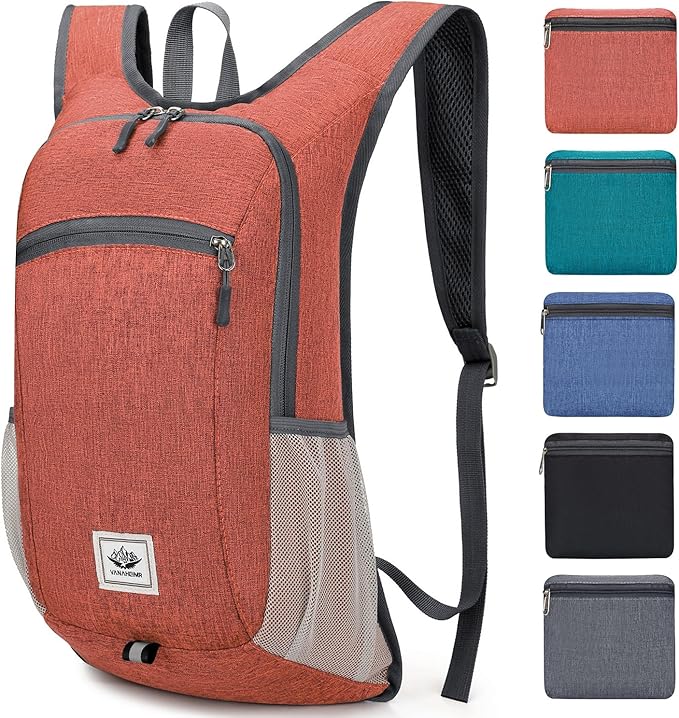 15L Lightweight Hiking Backpack Foldable Small Travel Backpack Packable Camping Backpack for Women Men (Dark Orange)