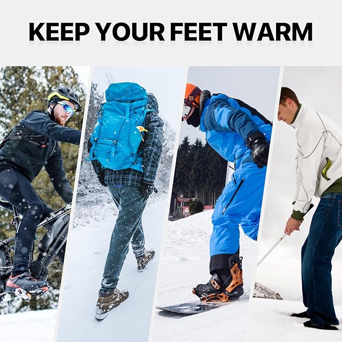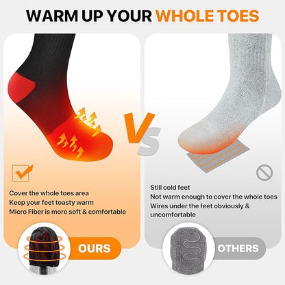 • 【Warm Up Whole Toes in 30s】Rechargeable heated socks rapidly heat up within 30s, cover the back of the feet and the whole toe area, and spread throughout the whole foot, keeping your feet warm and cozy.