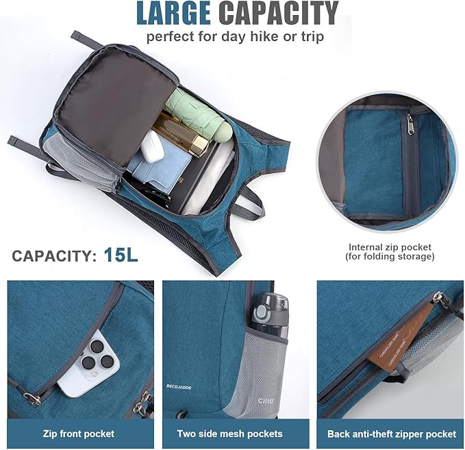 • 【Widely Used】The ultralight hiking daypack is good for a comfortable overseas plane trip, day city excursion, day hiking, weekend getaway and daily use. You can carry 1L water bottle, some snacks, and a hat, etc. Holds a lot without being too oversized and bulky. It is perfect for short hikes, work-home commutes and go to the park on weekends.
