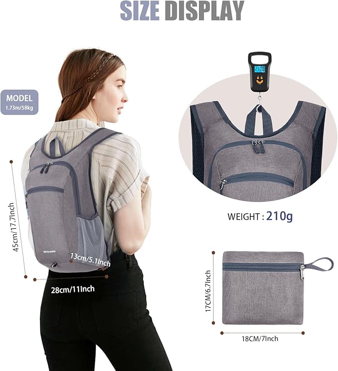 • 【Packable Backpack】Packs up super mini. The folded size is only 7 inch x 6 inch. You can pack the entire backpack into a small clutch. A nice small backpack that can be used for daily excursions and easily fits in luggage.