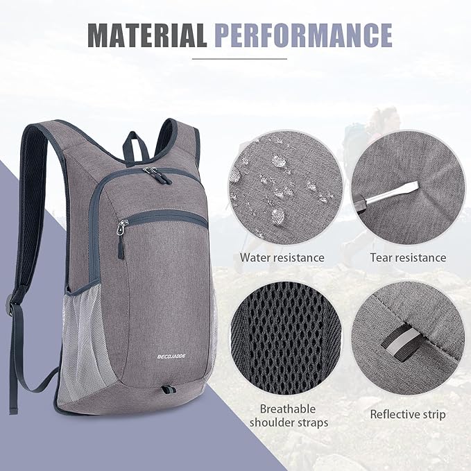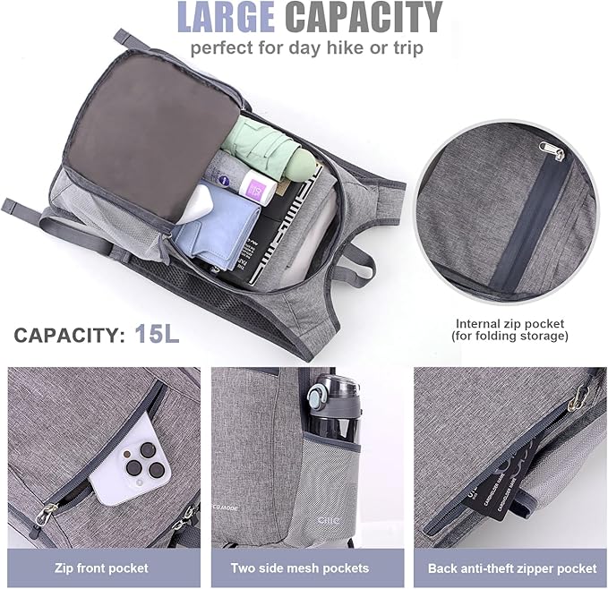 15L Hiking Backpack Small Travel Backpack Lightweight Packable Backpacks Casual Daypack for Women and Men, Light Grey