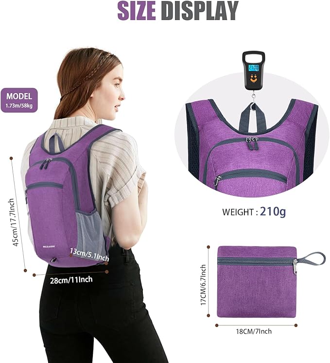 • 【Packable Backpack】Packs up super mini. The folded size is only 7 inch x 6 inch. You can pack the entire backpack into a small clutch. A nice small backpack that can be used for daily excursions and easily fits in luggage.