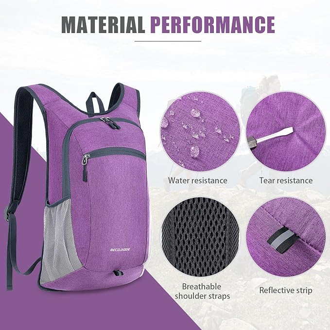 15L Hiking Backpack Small Travel Backpack Lightweight Packable Backpacks Casual Daypack for Women and Men, Light Purple