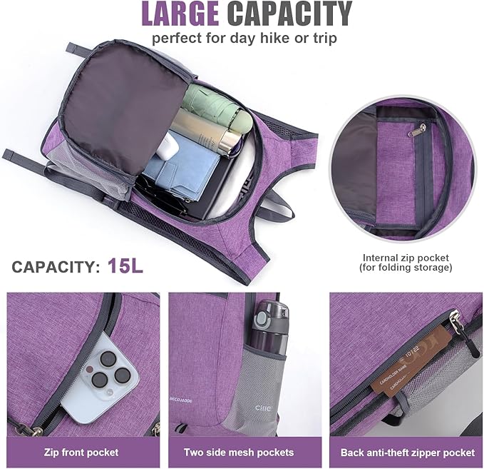 • 【Widely Used】The ultralight hiking daypack is good for a comfortable overseas plane trip, day city excursion, day hiking, weekend getaway and daily use. You can carry 1L water bottle, some snacks, and a hat, etc. Holds a lot without being too oversized and bulky. It is perfect for short hikes, work-home commutes and go to the park on weekends.