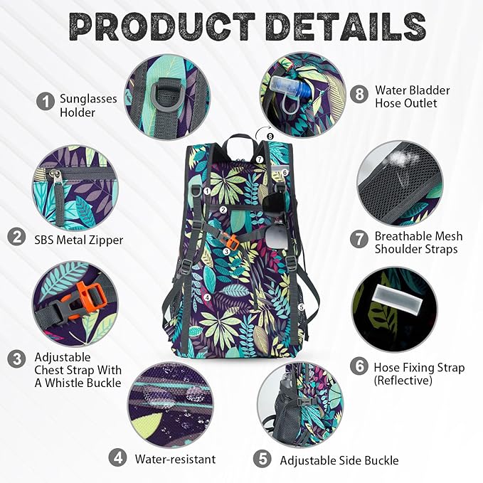 • SAFETY-ORIENTED FEATURES: This outdoor backpack has essential features for emergency situations. It includes a lifesaving whistle, perfect for attracting attention in critical moments. The backpack has a water bladder hole for convenient hydration on the go and multiple reflective strips to improve visibility in low-light conditions.