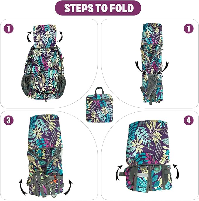• COMPACT & MULTI-PURPOSE: The compact design of this backpack meets the carry-on standards for most airlines. Whether you enjoy hiking, camping, climbing, cycling, or traveling, this outdoor backpack caters to all your needs. This foldable backpack has versatility and durability, making it an essential travel accessory.