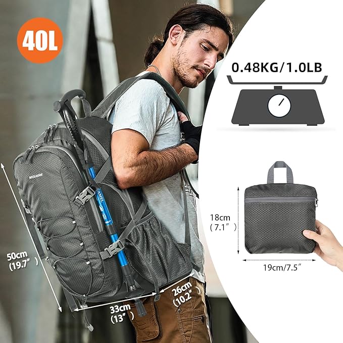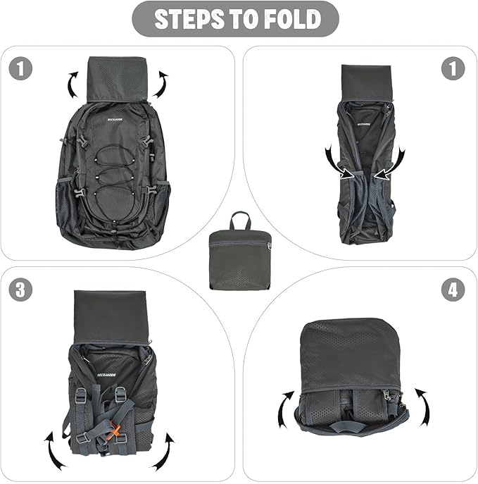 • COMPACT & MULTI-PURPOSE: The compact design of this backpack meets the carry-on standards for most airlines. Whether you enjoy hiking, camping, climbing, cycling, or traveling, this outdoor backpack caters to all your needs. This foldable backpack has versatility and durability, making it an essential travel accessory.