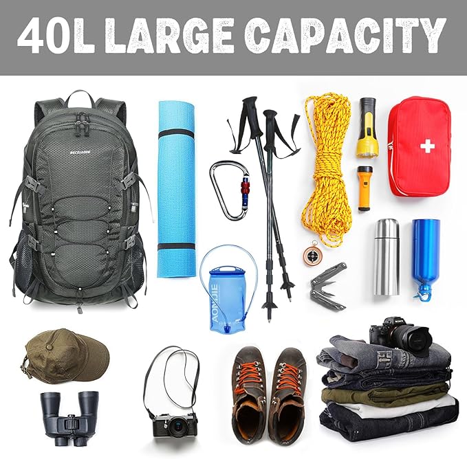 • ROBUST & DURABLE MATERIAL: BECOJADDE 40L hiking bag is constructed with high-quality, water-resistant nylon material, ensuring its durability. It features strong and smooth zippers, built to last.