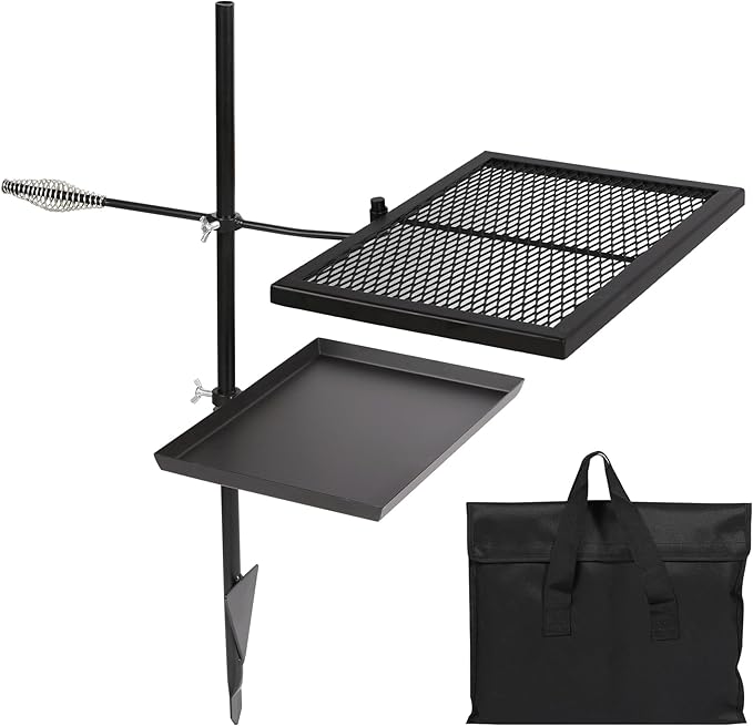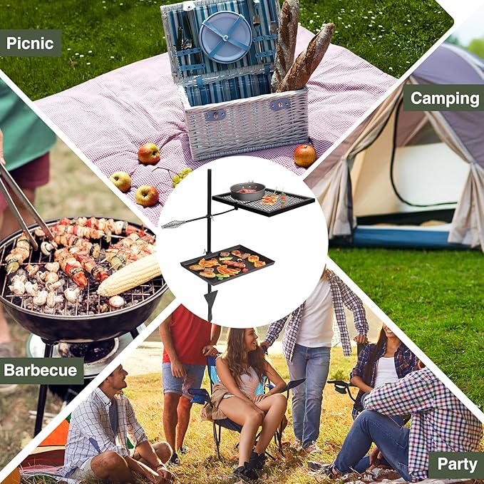 • Easy to Assemble: The adjustable swivel grill can be assembled easily in a few minutes. All the accessories are included. It’ s foldable and easy to carry, ideal for taking out to use. Perfect for camping and parties.
