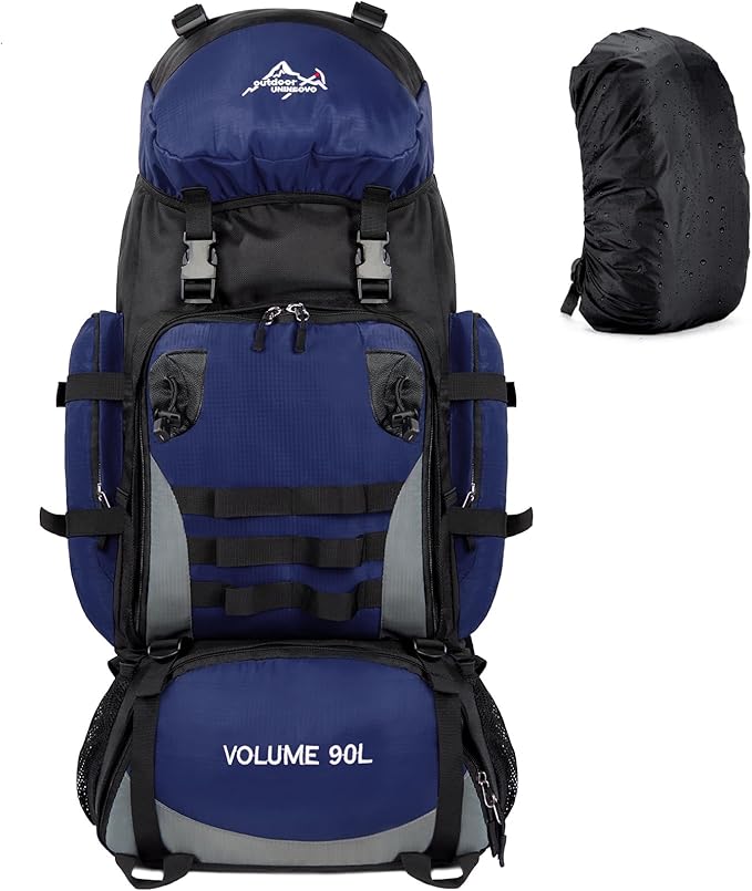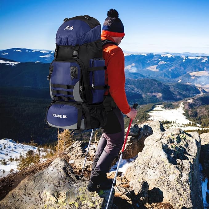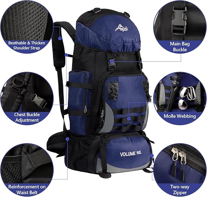 90L Large Camping Hiking Backpack with Rain Cover, Waterproof Molle Rucksack Military Backpack (Dark Blue)