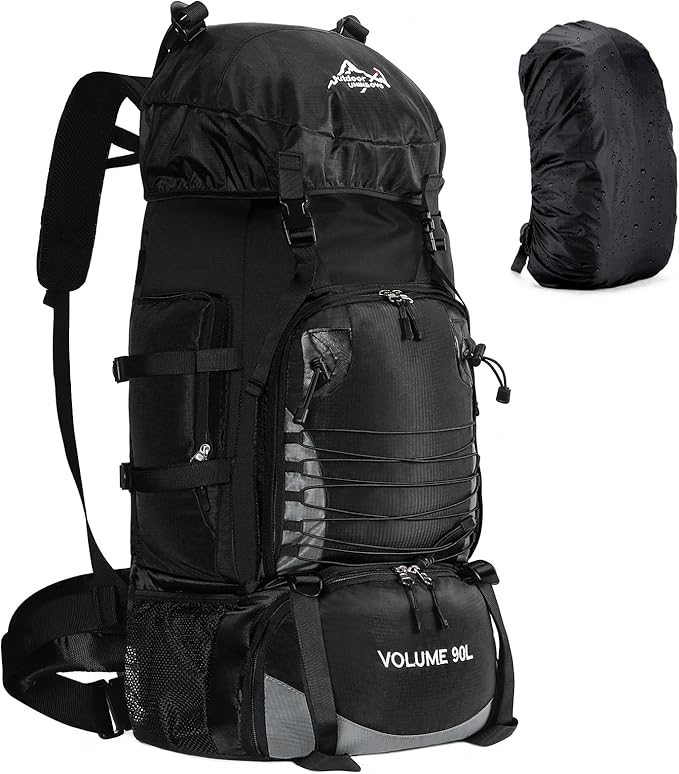Hiking Backpack with Rain Cover, 90L Camping Backpack, Lightweight Travel Daypack for Hiking Climbing Camping Touring -No Internal Frame