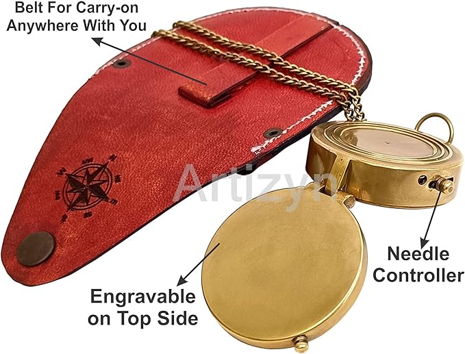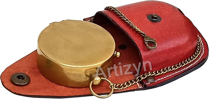 • This Handy pocket size compass is convenient to carry anywhere. Size of Compass : 2" x 2" x .75" Inches; Chain Length : 12" Inches; Leather Case Size : 2.6" x 1.2" x 2.6" Inches. It Is a portable device that can be easily carried along in a backpack and has a compact design. Perfect gift for Travelers, Nautical Collector, Architects & Table Décor. It is carefully packaged to ensure you receive it in perfect condition.
