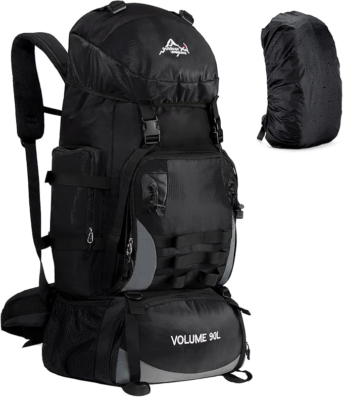 90L Large Camping Hiking Backpack with Rain Cover, Waterproof Molle Rucksack Military Backpack (Black)