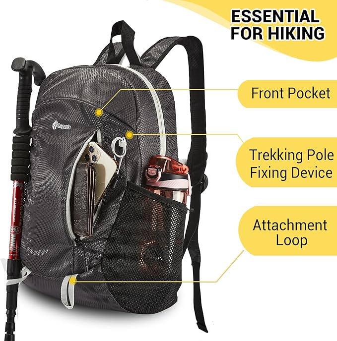15L Highly Water-resistant Hiking Daypack, Small Backpack Travel Outdoor, Lightweight Day Pack with Tool Loops