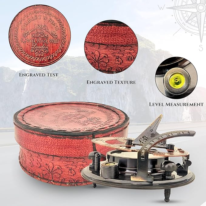 • Authentic Nautical Charm: Encased in genuine leather, our sundial compass evokes the spirit of maritime adventures, making it an ideal present for boaters, sailors, pirate gifts for men, engineers and gadget collectors.