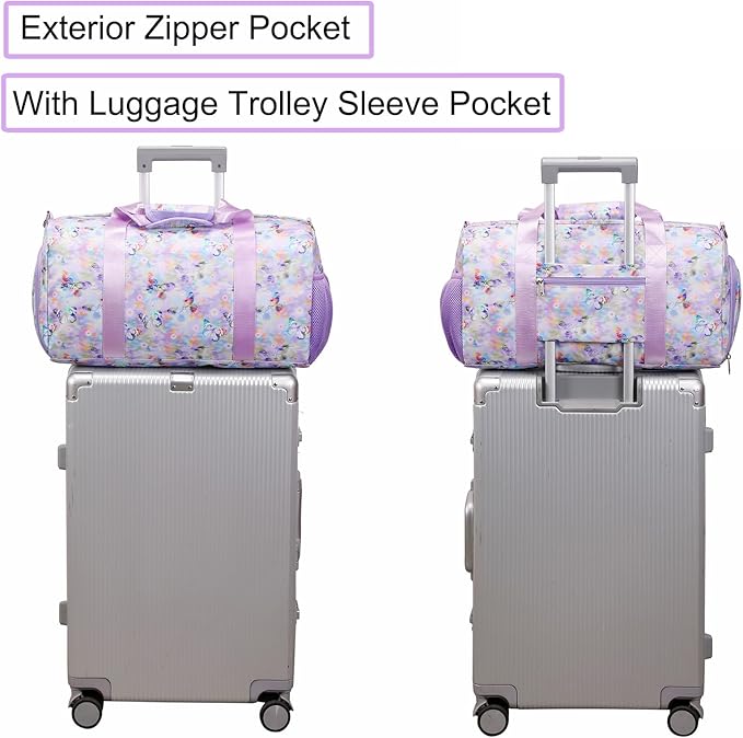 • Multifunctional Overnight Bag for - travel duffel bag with trolley sleeve;Back side sleeve allows you to slide the travel bag for ren on the handle of a rolling suitcase or carry-on luggage;Wide range of uses.as a ​dance, overnight, travel, weekend, weekender, sport, gym, ballet, sleepover, gymnastics,Birthday; is Ideal Gift Dance Bag for .