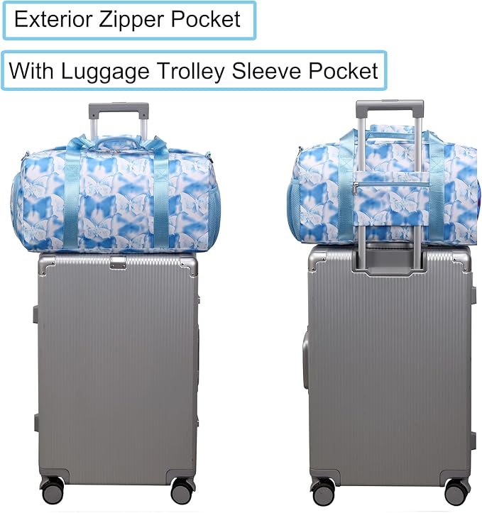 • Multifunctional Overnight Bag for Teen - Teen travel duffel bag with trolley sleeve;Back side sleeve allows you to slide the travel bag for ren on the handle of a rolling suitcase or carry-on luggage;Wide range of uses.as a ​dance, overnight, travel, weekend, weekender, sport, gym, ballet, sleepover, gymnastics,Birthday; is Ideal Gift Dance Bag for Teen.