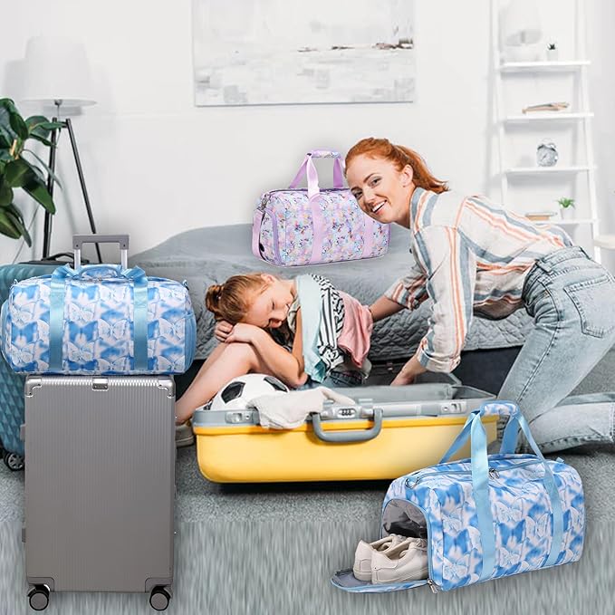 Butterfly Dance Duffel for Girls - Gymnastics & Overnight Bag with Shoe Compartments