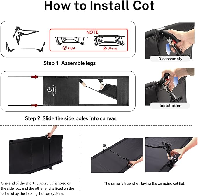 • EASY-TO-INSTALL CAMPING COT AVOID DAMPNESS RELY ON ITS 6.7” HEIGHT AND WATERPROOF THINKEN NYLON CLOTH.