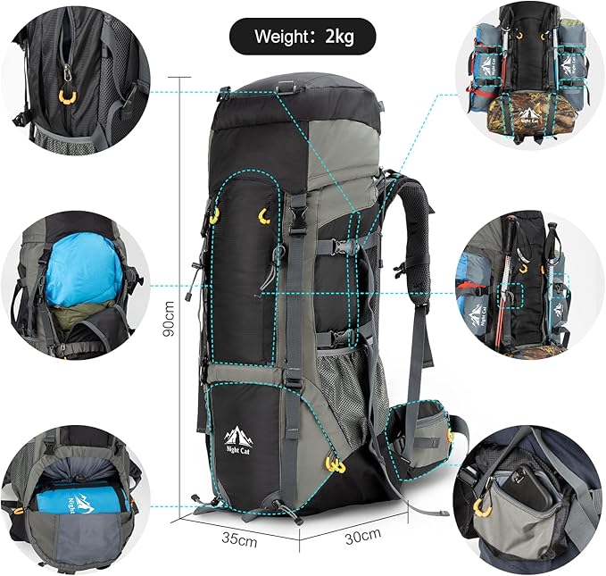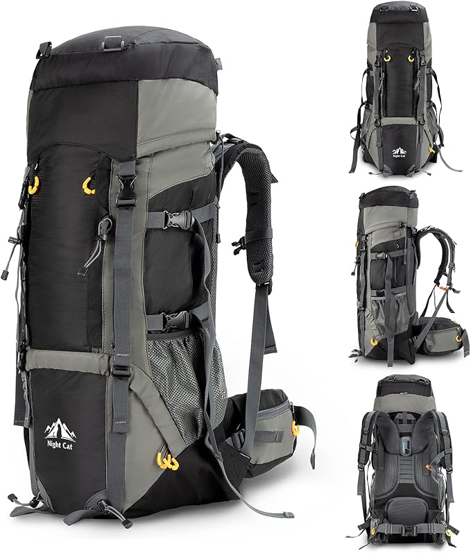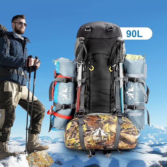 Night Cat Camping Backpacks 90L with Internal Frame Hiking Backpack for Men Women Waterproof Lightweight Breathable Outdoor Mountaineering Traveling