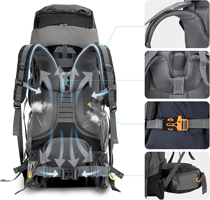 • 【Internal Frame & Ergonomic Design】Internal Frame back, widen and thicken sponge padding shoulder straps,waist belt help to relieve your burden.Breathable mesh padded with durable open-cell foam on the ergonomic back panel offer better ventilation to dissipate heat and give you more comfortable feeling