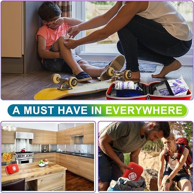 • Prepared for Emergencies Just In Case☏☏ Be prepared for unexpected injuries & emergencies with this basic first aid kit. It's perfect for families, hikers, athletes, and anyone who wants to be ready for anything. The home first aid kit supplies is the solution for most of your emergency needs. This kit is designed to provide daily first-aid care, whether you're indoor, on the road, or enjoying the great outdoors.