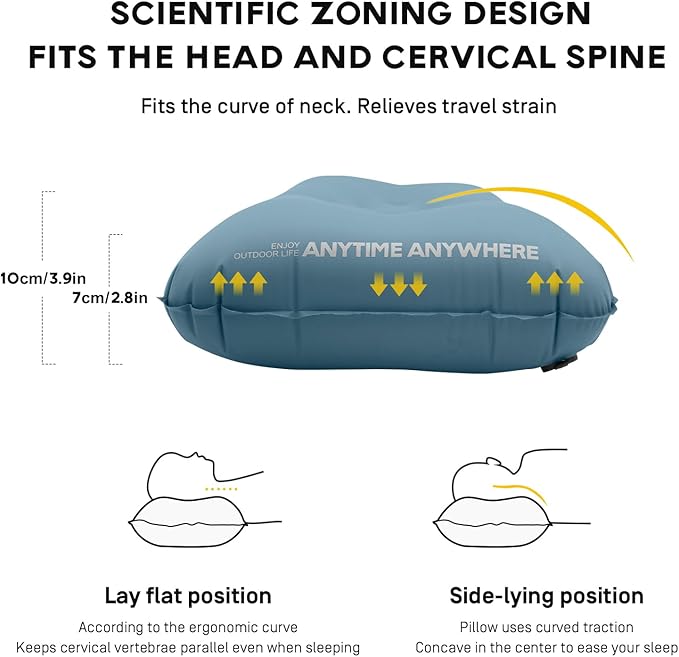 • ERGONOMIC DESIGN - The center features a recessed design that combines each air compartment to support the head and is soft and comfortable, easing you into sleep. The ends are curved to fit the shoulders and neck, and the U-shaped support arc fits the cervical vertebrae, scientifically designed for a variety of sleeping positions.