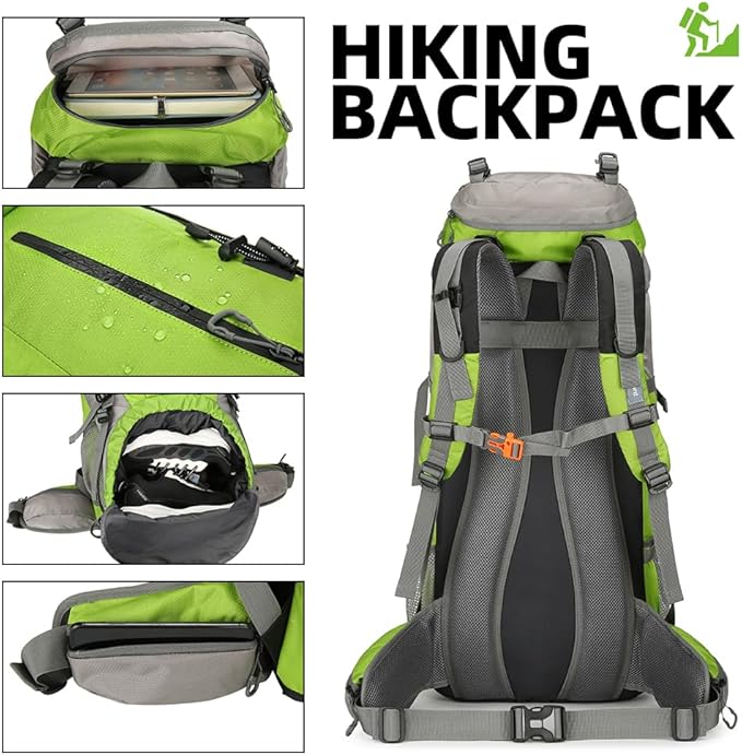 • 【Ultra-durable and waterproof】- The Hiking Backpack is crafted from high-quality, water-resistant materials, ensuring that your belongings stay dry even in heavy downpours. Its lightweight design and comfortable straps make it perfect for all your outdoor adventures.