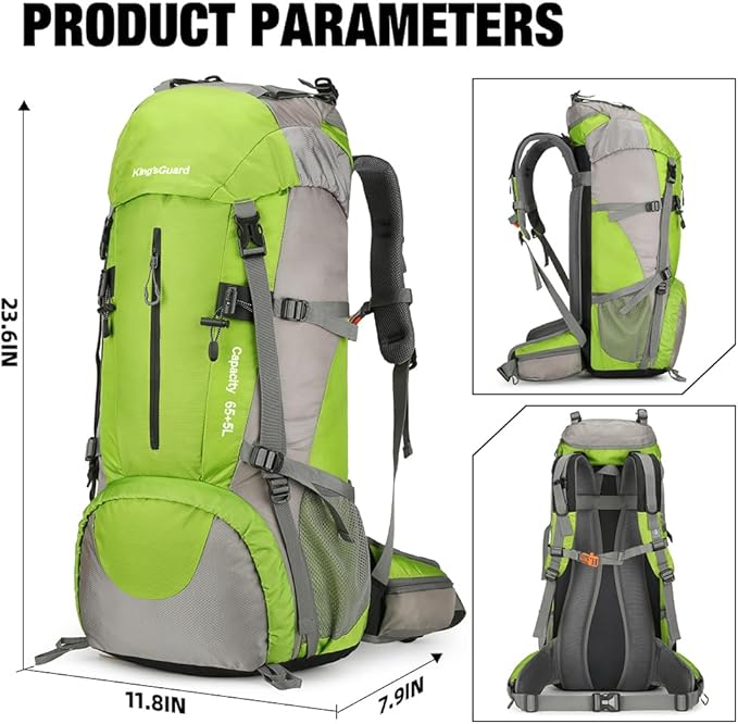 • The king'sguard 70l hiking backpack is suitable for any outdoor activities including cycling, fishing or treated as a for family and friends. It's the perfect companion for upcoming camping trips and ideal for your spring/summer/fall/winter outdoor escapades. The 70l backpack size: 11.8*7.9*23.6 inch. 【 ONE YEAR QUALITY SUPPORT 】