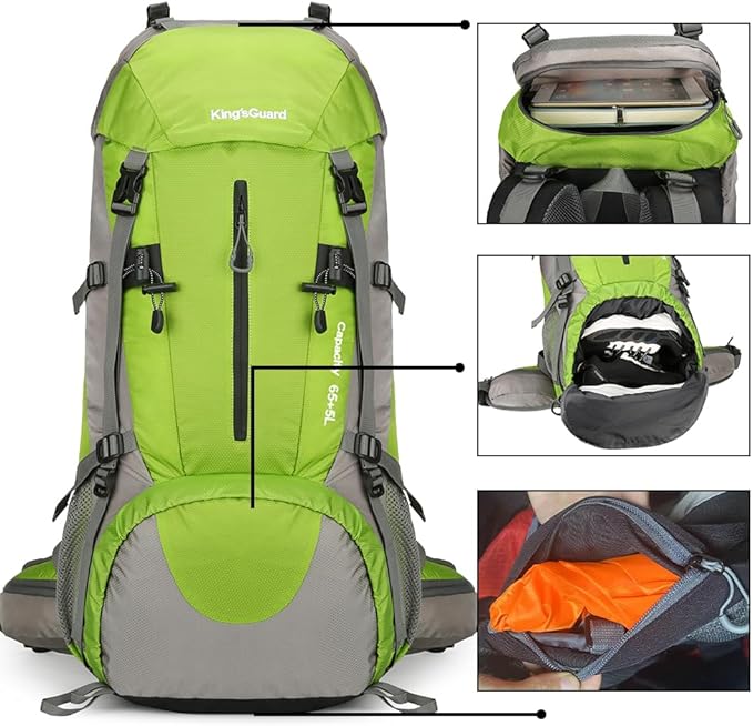 King'sGuard 70L Hiking Backpack Waterproof Camping Backpack with Rain Cover Large Lightweight Backpacking Backpack Daypack for Travel Outdoor -Frameless (Green)