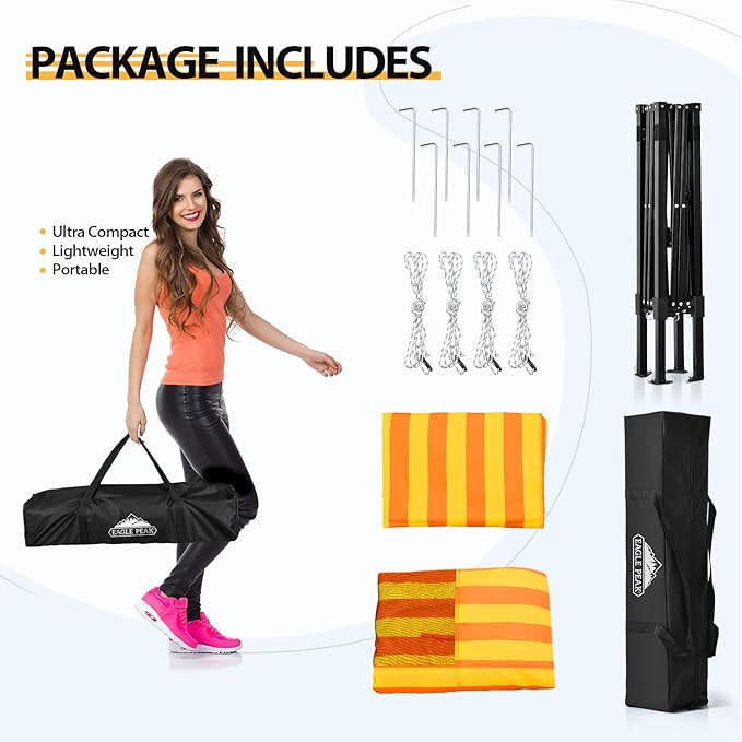• EASY TO SETUP AND PUT AWAY: The EAGLE PEAK pop up system is more flexible and makes setup easy. The frame glides when opening and closing, enabling one person to easily open and close the canopy .