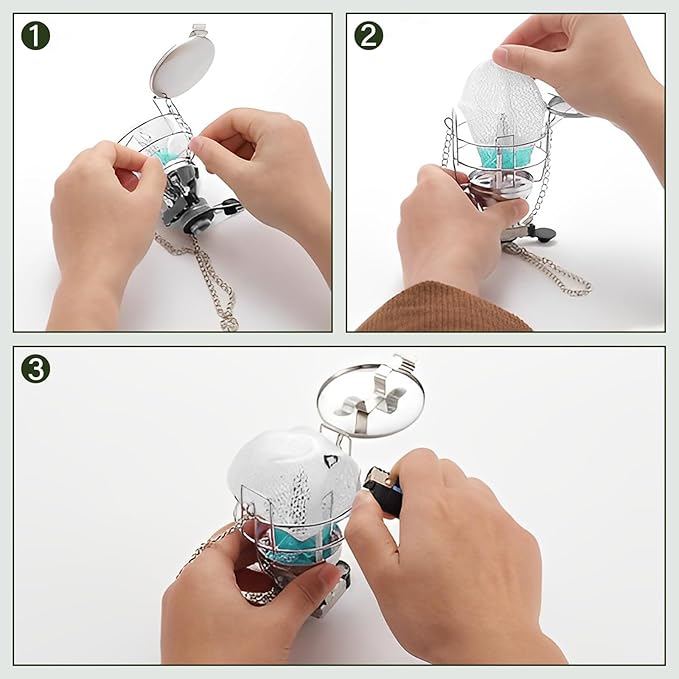 • 【What Should Be Noticed】Be careful to fix the metal clips on the upper and lower wicks, do not use too much force, so as not to be torn off. The lantern mantles that turn white after burning are easy to shatter. When replacing a new lantern mantle, be careful not to invade the used lantern mantle into lantern and damage your lantern.