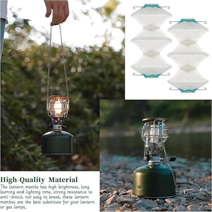 • 【What Are Made Of】These propane lantern mantles are made of high quality rayon, easy to install. The lantern mantle has high brightness, long burning and lighting time, strong and not easy to break, these lantern mantles are the best substitute for your lantern or gas lamps.
