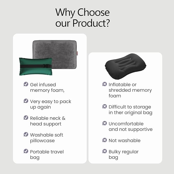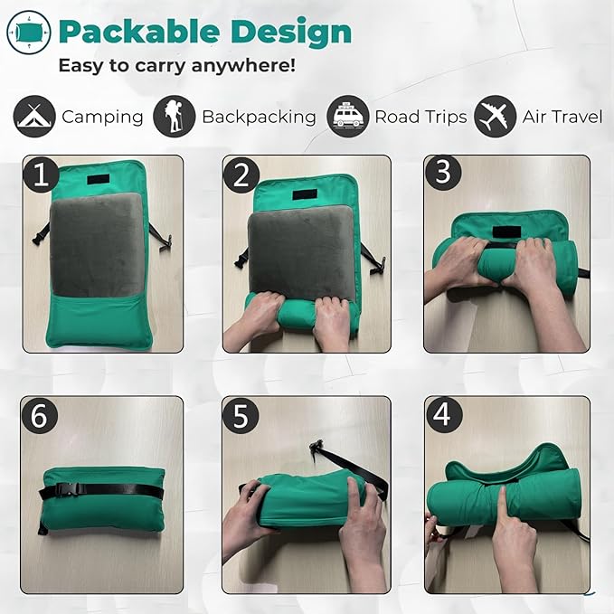 • ✅【Versatile Pillow】Not just for camping, hiking. Lightweight, compressibl memory foam travel pillow is also ideal for short trips and flights, making it a multi-functional choice for anyone in need of a comfortable pillow.