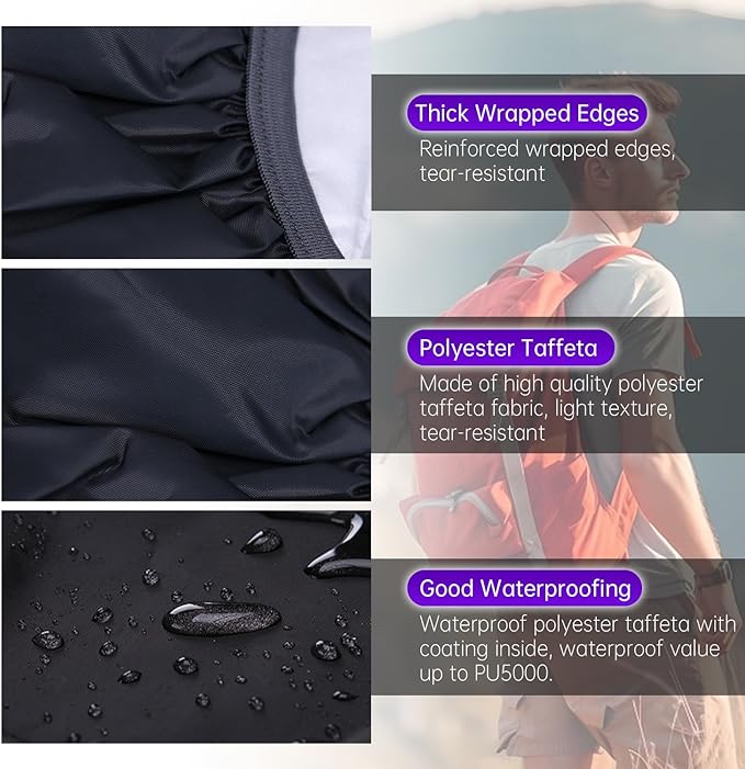 • 【Superior Waterproof Protection】: Crafted from 190T polyester taffeta with a silver-coated interior, this rain cover boasts a high waterproof rating of 1500mm. It effectively shields your backpack and belongings from rain and moisture, ensuring they stay dry even in heavy downpours.