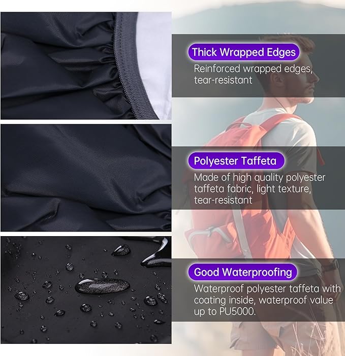 • 【Superior Waterproof Protection】: Crafted from 190T polyester taffeta with a silver-coated interior, this rain cover boasts a high waterproof rating of 1500mm. It effectively shields your backpack and belongings from rain and moisture, ensuring they stay dry even in heavy downpours.