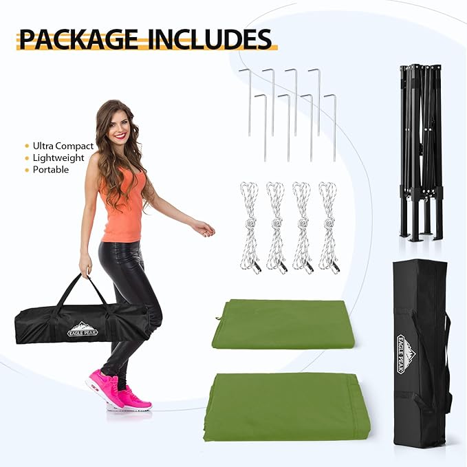 • EASY TO SETUP AND PUT AWAY: The EAGLE PEAK pop up system is more flexible and makes setup easy. The frame glides when opening and closing, enabling one person to easily open and close the canopy .