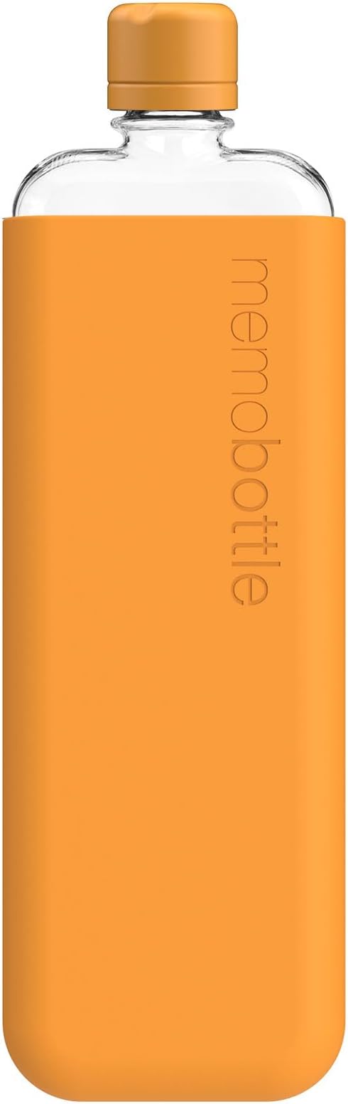 memobottle SLIM (Mandarin) Bundle - 15oz (450ml) - Bottle, silicone sleeve & lid | Sleek, Slim & Flat Water Bottle for Bags & Laptops | BPA Free Tritan | Modern, Minimalist | Ideal for Daily Use