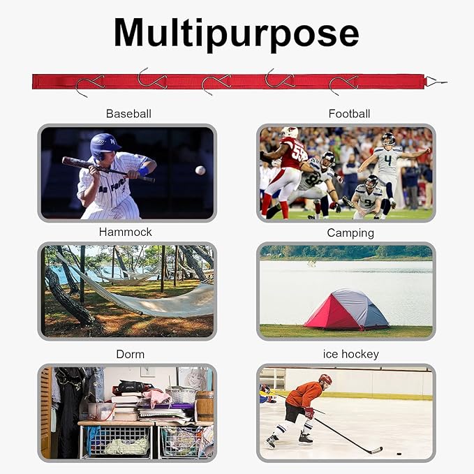 • 【Portable & Compact】This storage strap is made up of a premium nylon strap and stainless steel hooks.Hockey Gear Drying Rack is Lightweight, easy to pack, and bring anywhere! Unlike the bulky hockey tree drying rack, this portable hockey gear drying rack won't take up any extra space in your luggage or backpack.Portable Hockey Hanger will be a good gift for outdoor camping lovers to collect their wet clothes