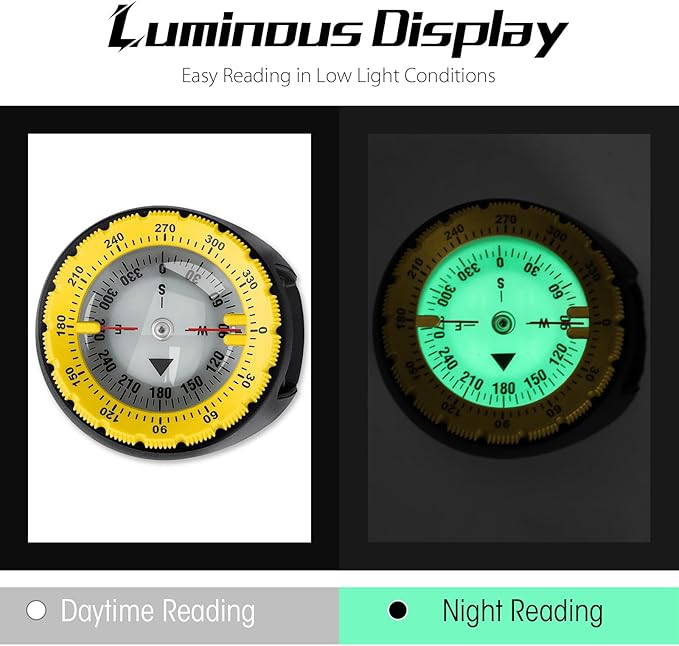 • SCUBA DIVING COMPASS - Our latest dive compass provides 50m waterproof performance for underwater navigation and includes a wide wrist mount strap to wear on your wrist while diving for hands-free navigation that's easily accessible.