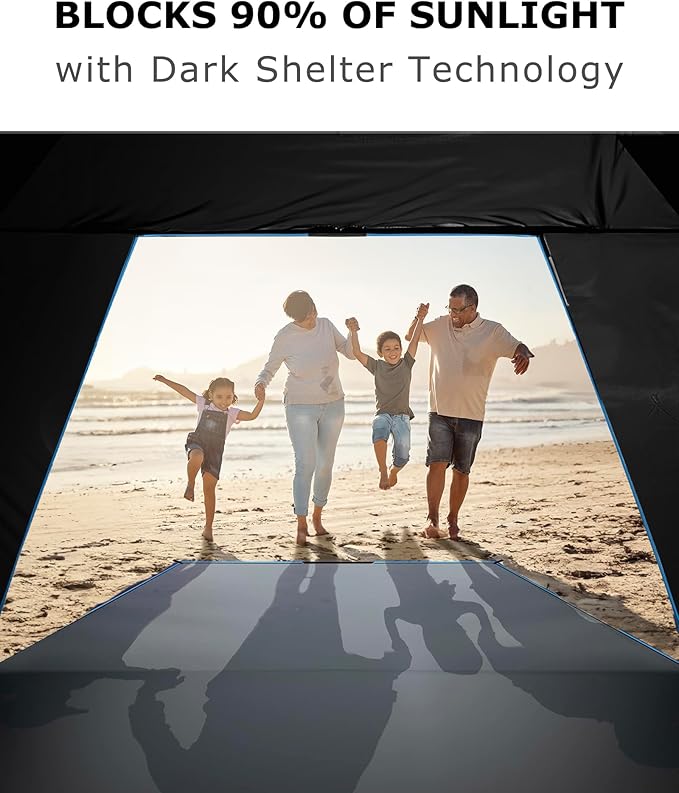 • [High-Quality Dark Shelter Coating Material] Venustas beach tents provide increased sun protection thanks to an innovative dark shelter coating material. With UPF 99+ UVProtection, it successfully blocks 99% of harmful UVA and UVB rays, reducing the risk of sunburn or harm, making it ideal for kids or adults lounging out. This ensures a cooler and more comfortable environment inside the tent.