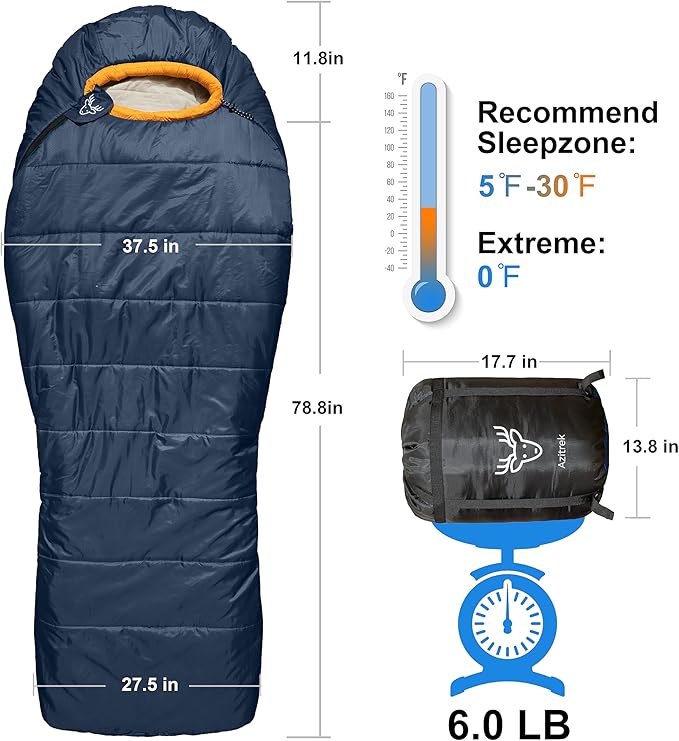 • LUXURY PEANUT SHAPE COMFORT: designed for side sleepers, embrace the chilly nights with our peanut-shaped mummy winter sleeping bags for adults, youth, and even the big and tall campers, whether you're camping, hiking, backpacking, or traveling. TEMP RANGE: 0F - 30F
